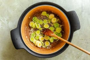 Saute: Heat 2 Tbsp olive oil in a large pot, then add the sliced leeks and 4 cloves garlic (minced). Cook until leeks are tender, about 5 to 7 minutes.
